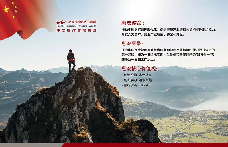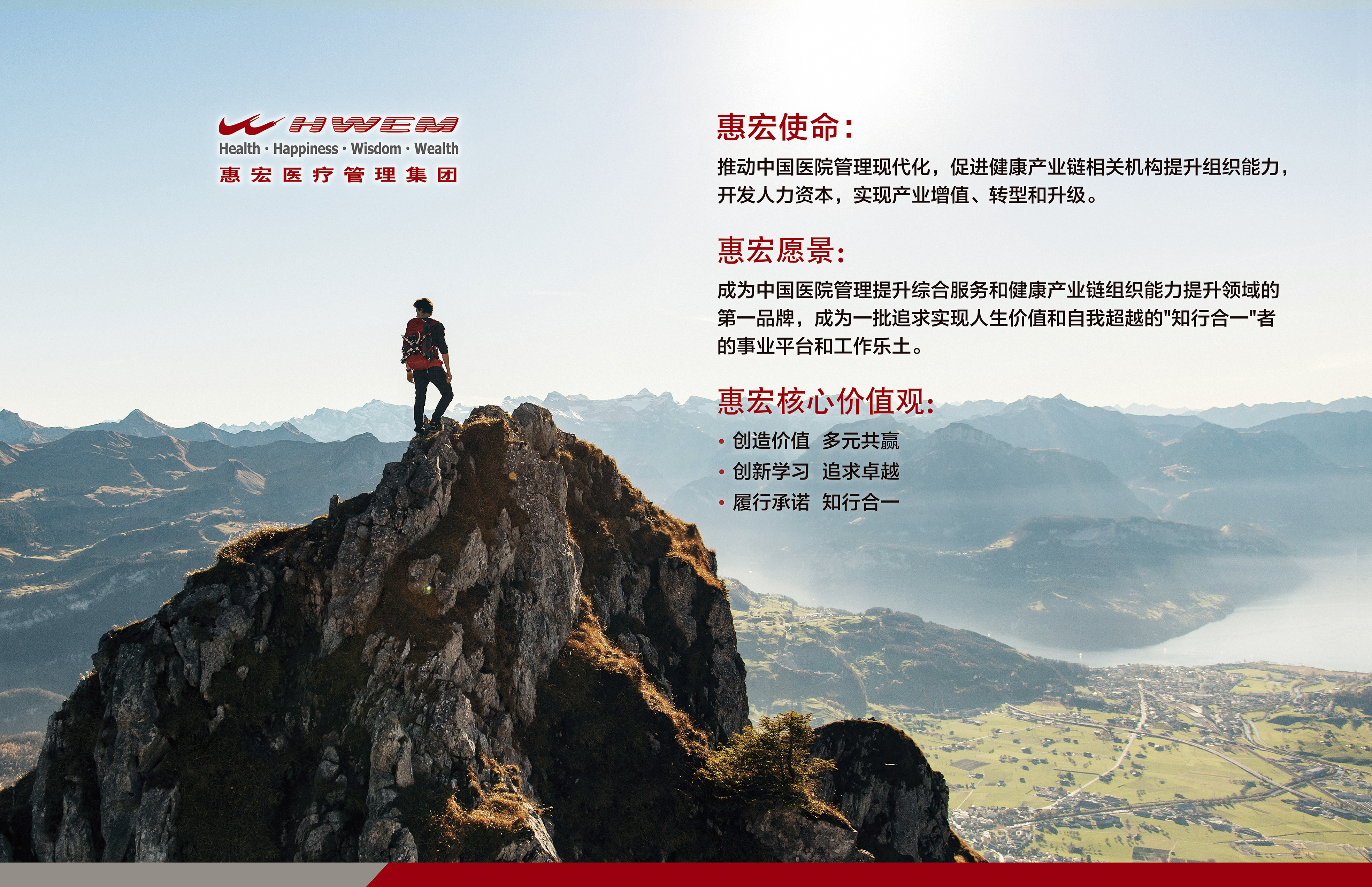 惠宏医疗管理集团为医院提供全面绩效管理与新建医院方面的咨询和培训服务,另外还有医院科室规划、医院组织架构、医院定岗定编和医院胜任力等业务