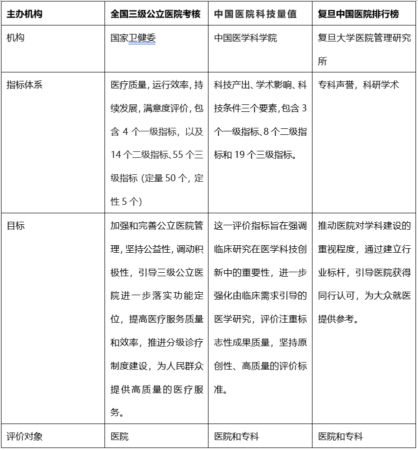 这三个评价体系都有各自的目标和侧重,结合起来可以对医院排名有更全面的认识。